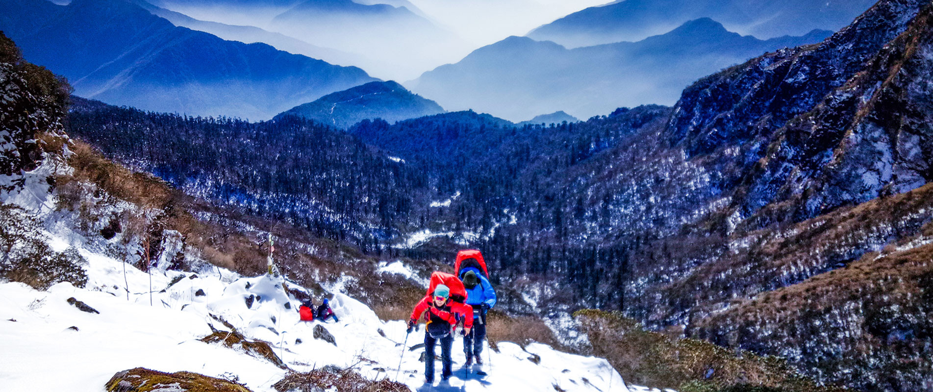 The trail to the Nangola pass is an easy hike along a well-marked trail which takes about 2 hours. Once on the top, we can map out the Selele La trail and the whole of Kanchenjunga South.